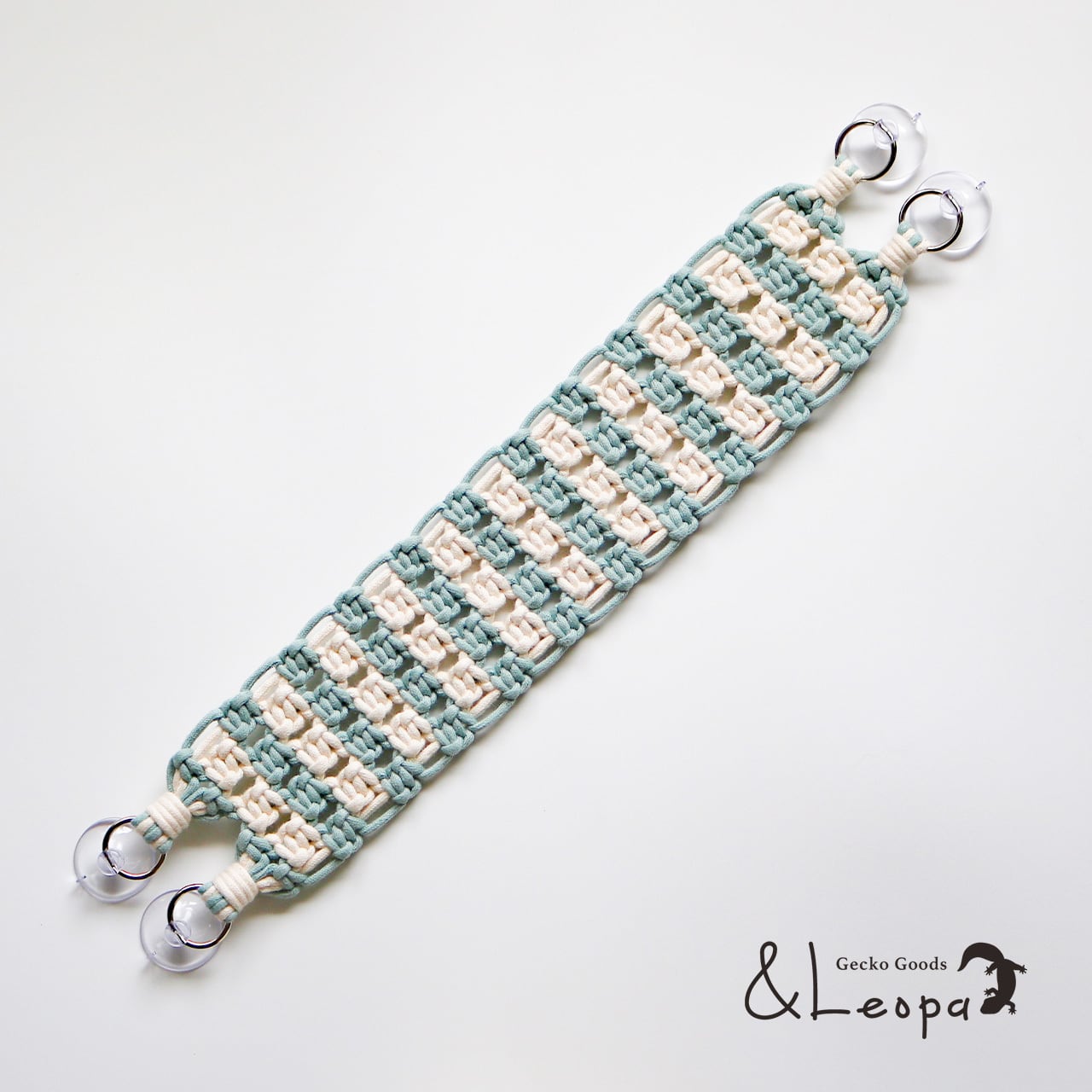 また、引っかかって怪我をしないよう、ほつれにくいマクラメ糸を使用していますので、活動的なレオパにも安心してご使用いただけます。