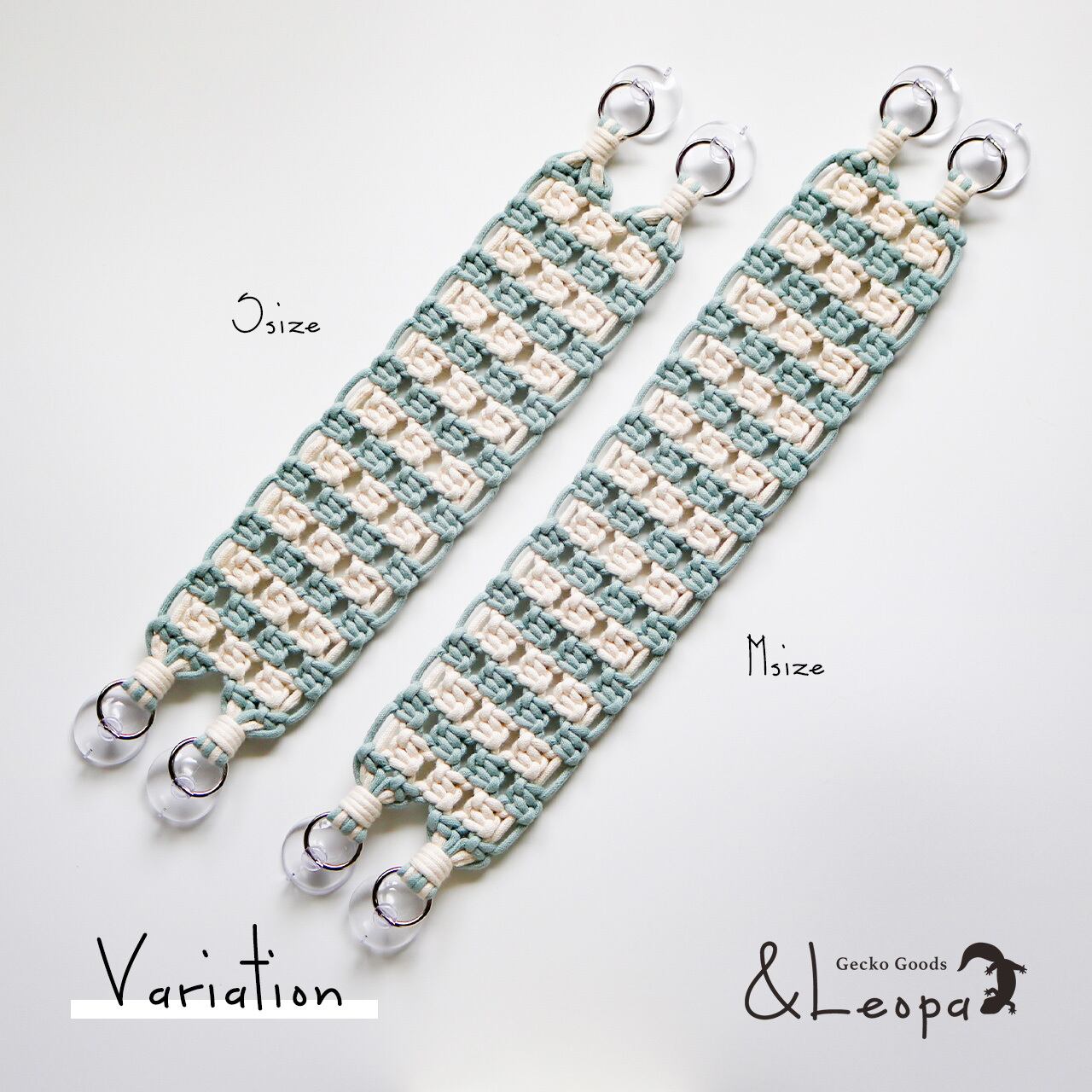 また、引っかかって怪我をしないよう、ほつれにくいマクラメ糸を使用していますので、活動的なレオパにも安心してご使用いただけます。